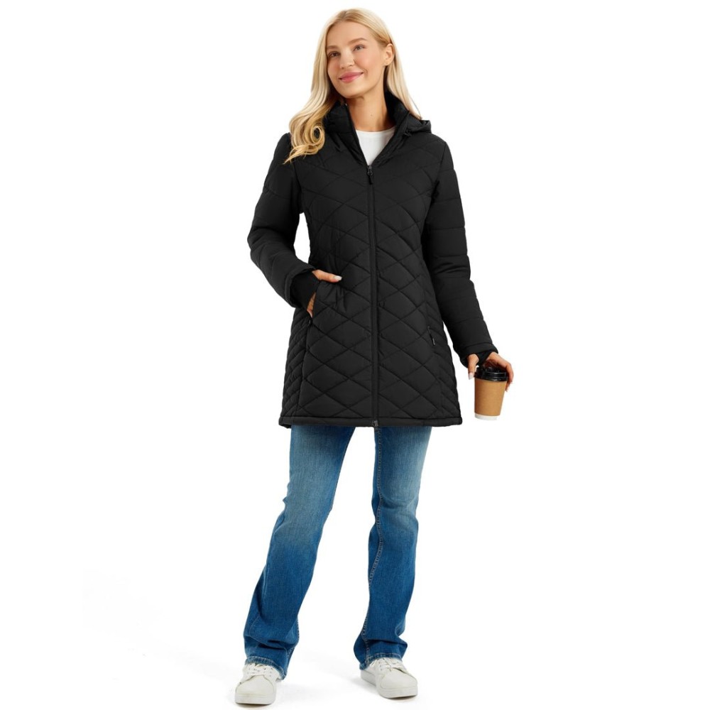 • Storage & Fit: Two zippered hand pockets and one inner pocket keep essentials secure, while princess seams and diamond quilting create a slim, flattering silhouette.