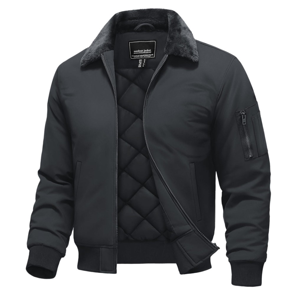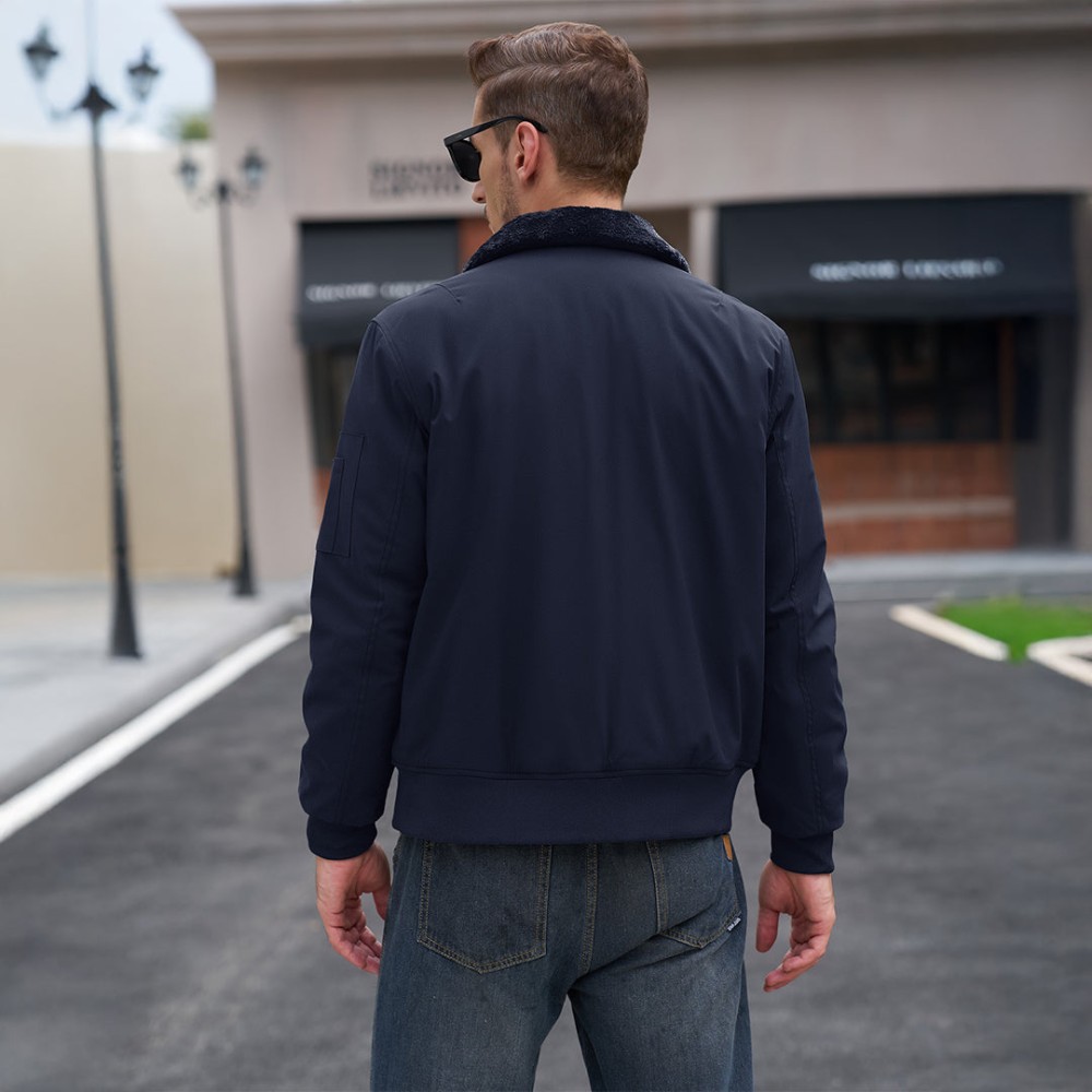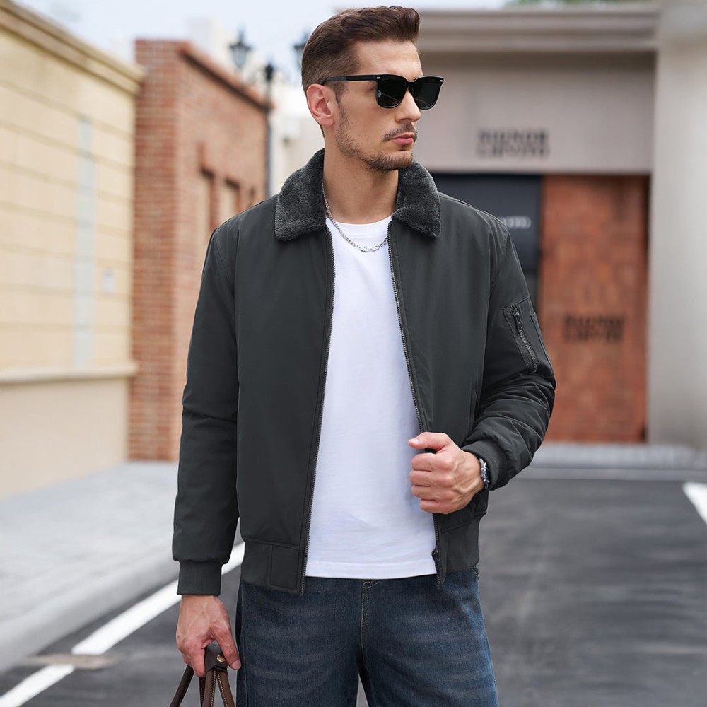 Men's Casual Fleece Bomber Jacket with Fur